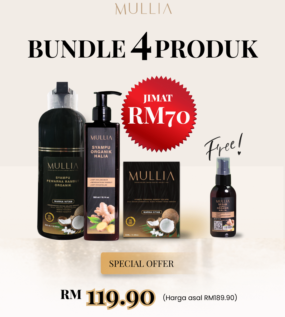 Syampu Halia Organik Mullia (300ml) + Serum Halia Organik Mullia (50ml)